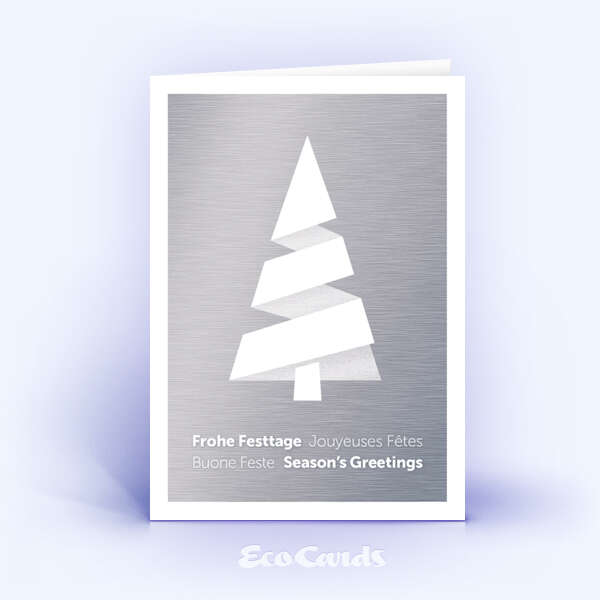 Das Metall-Design dieser Weihnachtskarte wird mit mineralölfreien Farben auf das polarweiße Recyclingpapier gedruckt. Die hochwertige Optik der gebürsteten Metalloberfläche verleiht der Karte ihren besonderen Charme. Wenn Sie weitere Weihnachtskarten mit Metall-Design für die Metallbranche, Metallbau oder Maschinenbau suchen, finden Sie hier eine Übersicht unserer aktuellen Motive.