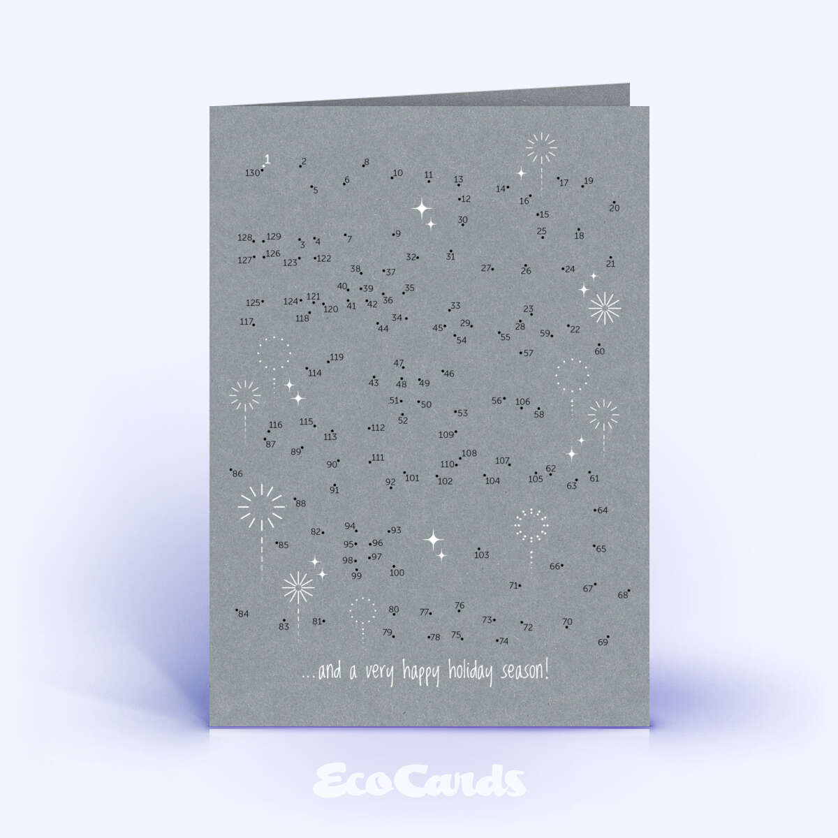 Der englische Neujahrsgruß macht diese Weihnachtskarte zur passenden Wahl für internationale B2B-Kontakte. Das Punkt-zu-Punkt Bildrätsel lädt zur Mitmachen ein und sorgt dafür, dass Ihre Weihnachtskarte länger in Erinnerung bleibt.
