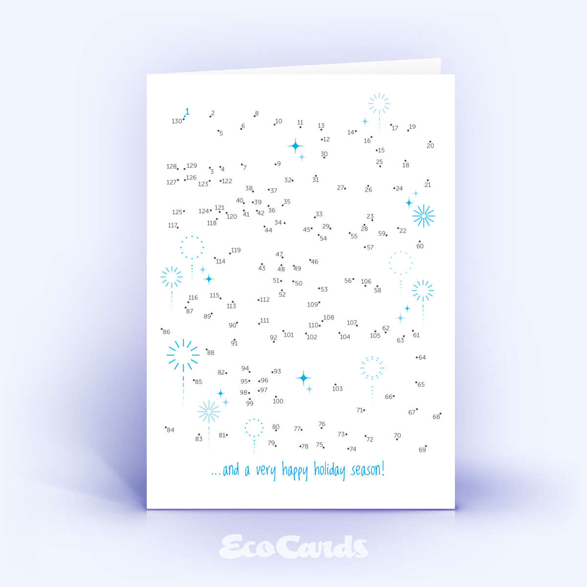 Diese besondere Neujahrskarte in Blau verbindet einen englischen Neujahrsgruß mit einer kleinen, kreativen Interaktion. Wenn Sie alle 130 Punkte verbinden, wird nach und nach der englische Neujahrsgruß „Happy New Year” sichtbar. Sie möchten die Auflösung sehen oder weitere Weihnachtskarten mit Rätsel entdecken? Hier gelangen Sie zur Übersicht aller Designs mit Lösungen.