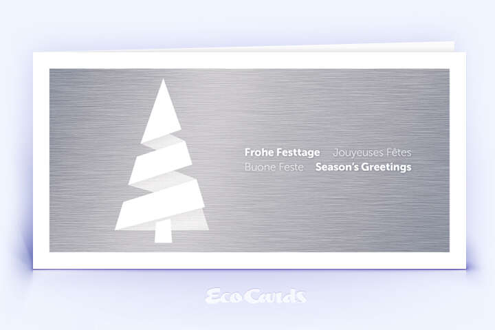 Das Metall-Design dieser Weihnachtskarte wird mit mineralölfreien Farben auf das polarweiße Recyclingpapier gedruckt. Die hochwertige Optik der gebürsteten Metalloberfläche verleiht der Karte ihren besonderen Charme. Wenn Sie weitere Weihnachtskarten mit Metall-Design für die Metallbranche, Metallbau oder Maschinenbau suchen, finden Sie hier eine Übersicht unserer aktuellen Motive.