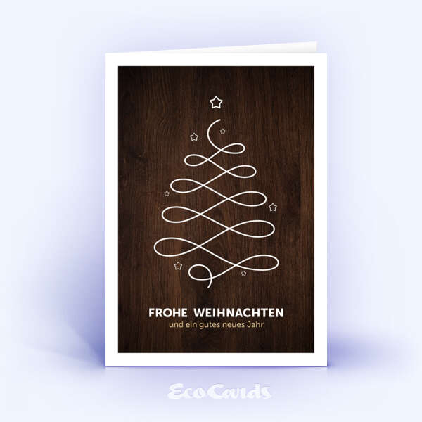 Das Holzdekor dieser Weihnachtskarte wird mit mineralölfreien Farben auf das polarweiße Recyclingpapier gedruckt. Die edle Optik des Holzfurniers verleiht der Karte ihren besonderen Charakter. Wenn Sie weitere Weihnachtskarten mit Holzdekor oder Branchenkarten für Schreiner, Tischler oder das Holzgewerbe suchen, finden Sie hier eine Übersicht unserer aktuellen Motive.